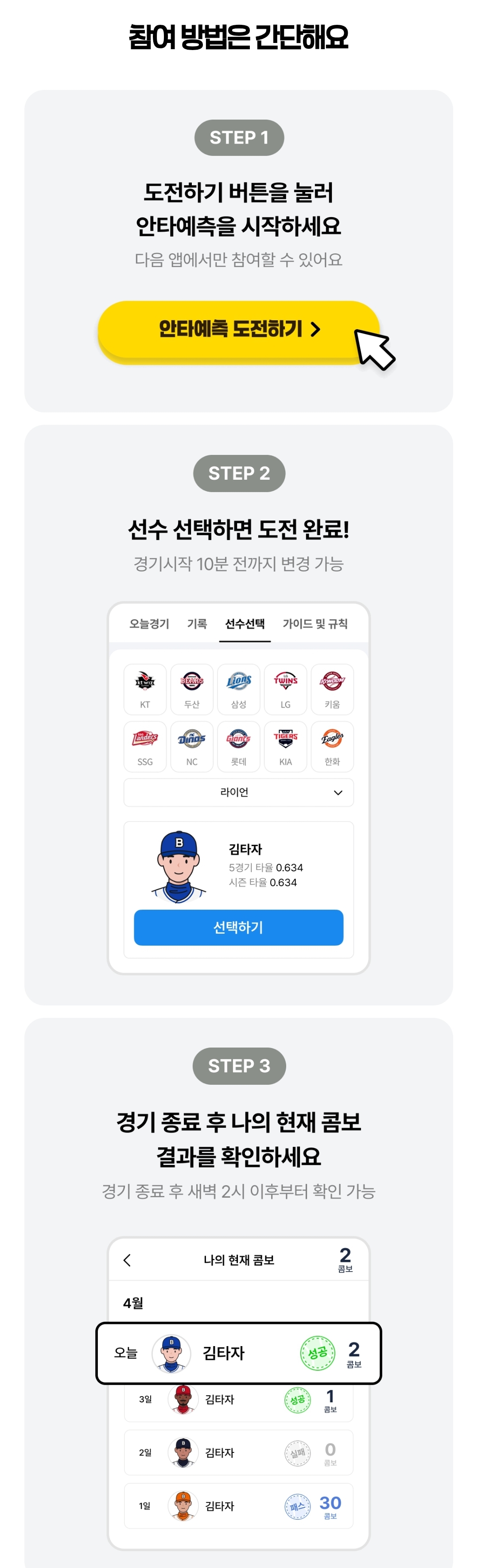 다음앱을 통해서만 참여가능하니 꼭 다음 앱 설치 후 2025년 프로야구를 더욱 재밌게 즐기시길 바랍니다