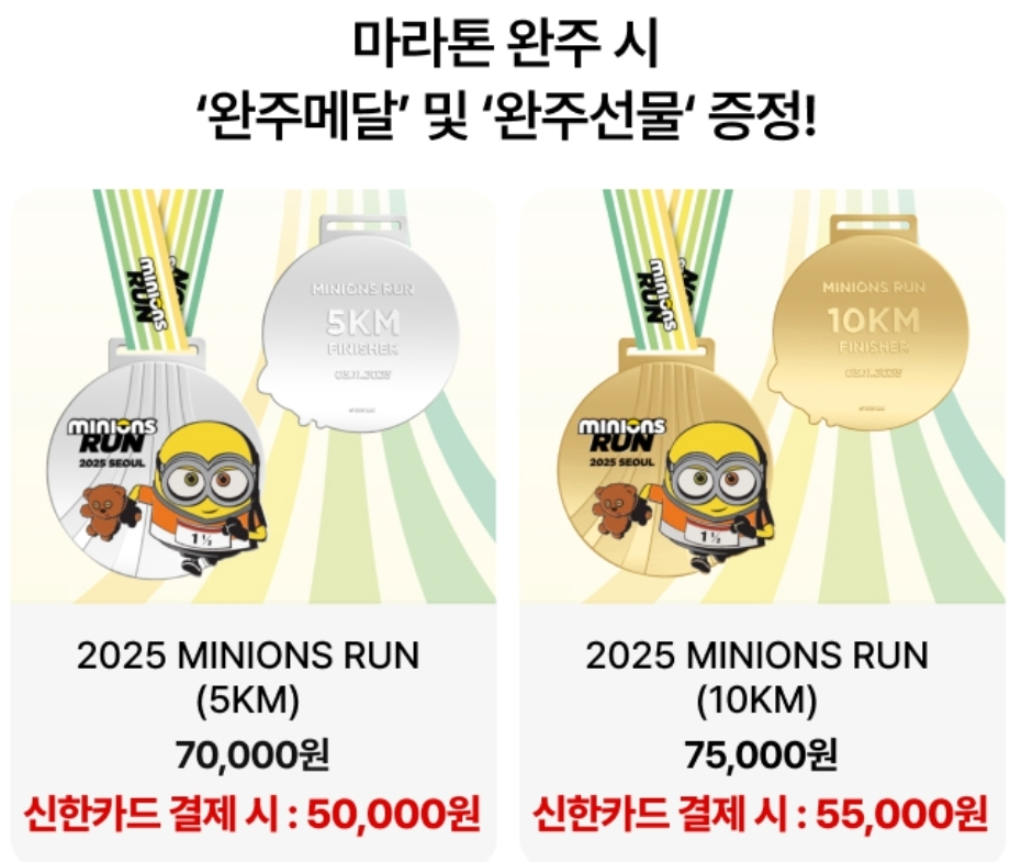 다양한 구성품과 마라톤 완주 시 지급되는 미니언즈 기념 완주메달이 탐나네요